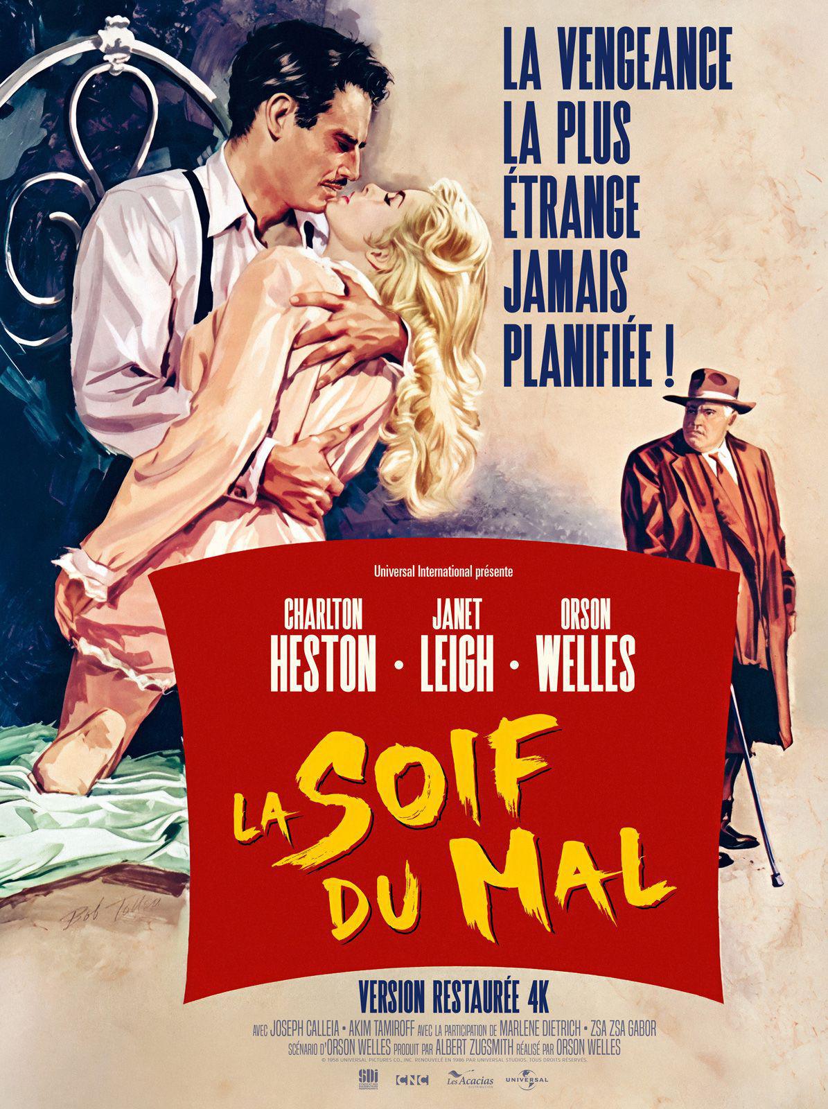 1h51|Policier, Thriller de Orson Welles avec Charlton Heston, Janet Leigh, Orson Welles (1958). L’explosion d’une bombe dans le secteur américain de Los Robles, petite ville frontalière entre les États-Unis et le Mexique, fait craindre des complications entre les deux pays. Le procureur mexicain, Miguel Vargas, alors en voyage de noces, décide de s’investir dans l’enquête et découvre les méthodes peu recommandables de l’inspecteur américain Hank Quinlan. Vargas et sa femme se retrouvent pris au piège entre une police locale corrompue et les gangs de la région.